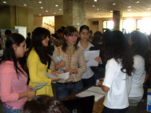 Participants of the American Councils' (Armenia) educational fair get acquainted with the benefits of studying at the Leadership School.