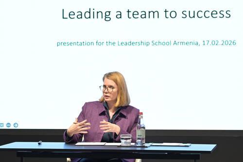 Կլաուդիա Բուշը (Գերմանիայի դեսպան) կիսվում է արդյունավետ թիմային աշխատանքի վերաբերյալ իր մտքերով ու վերլուծություններով։